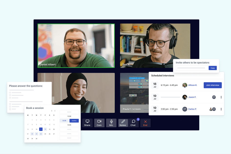 Nutze einen Pool von mehr als 200.000 unterschiedlichen Teilnehmenden aus mehr 130 Ländern und 25 Branchen, oder führe mit Engage Interviews mit eigenen Nutzenden.