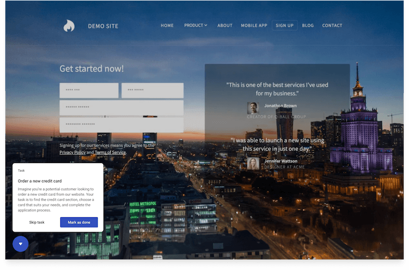 Obtenha insights válidos enquanto o usuário interage com seu site ou produto, no próprio ritmo, sem nenhuma orientação de um moderador.